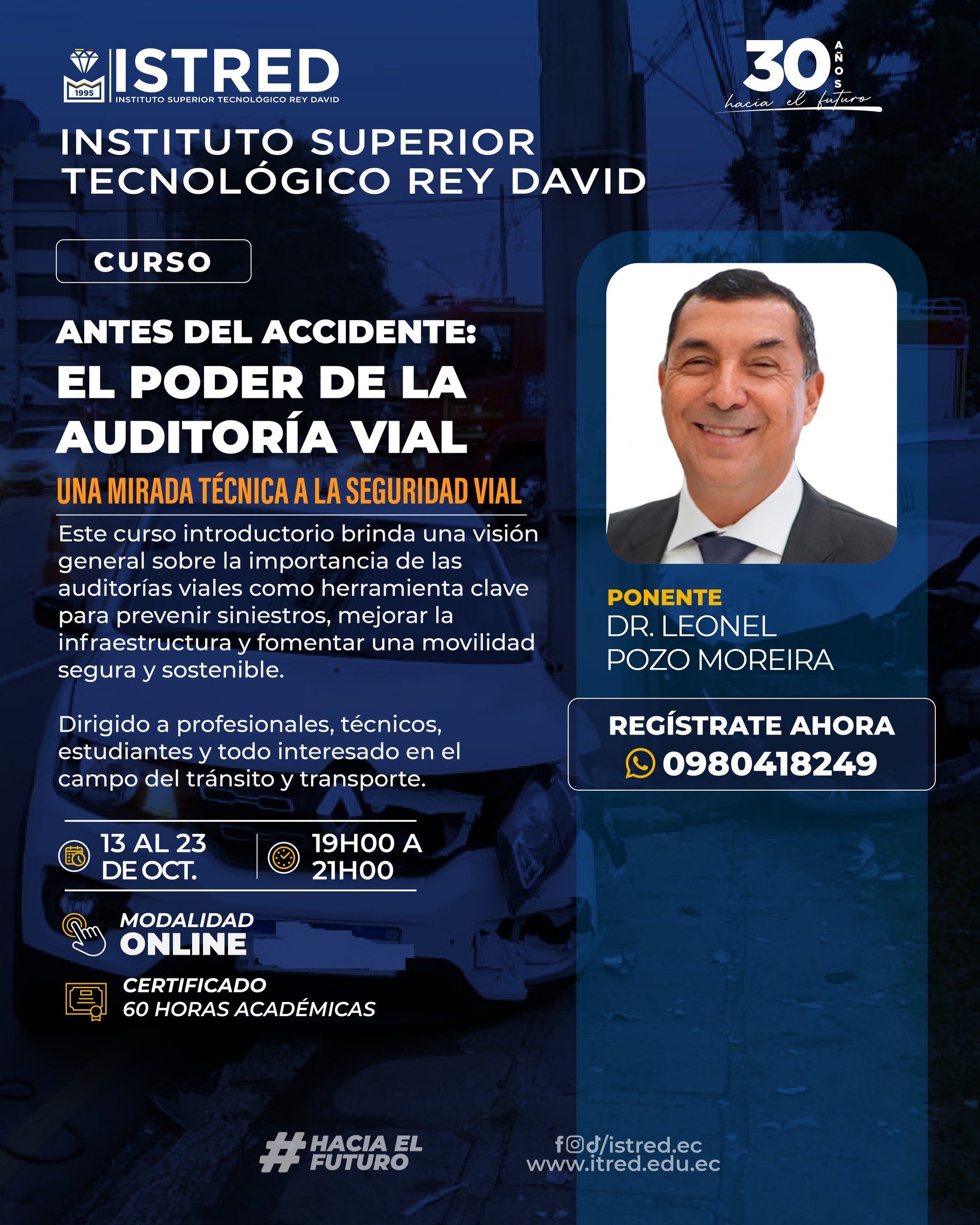 📌 Curso: Antes del Accidente: El Poder de la Auditoría Vial 📚 Duración: 60 horas académicas 💲 Valor: $40...