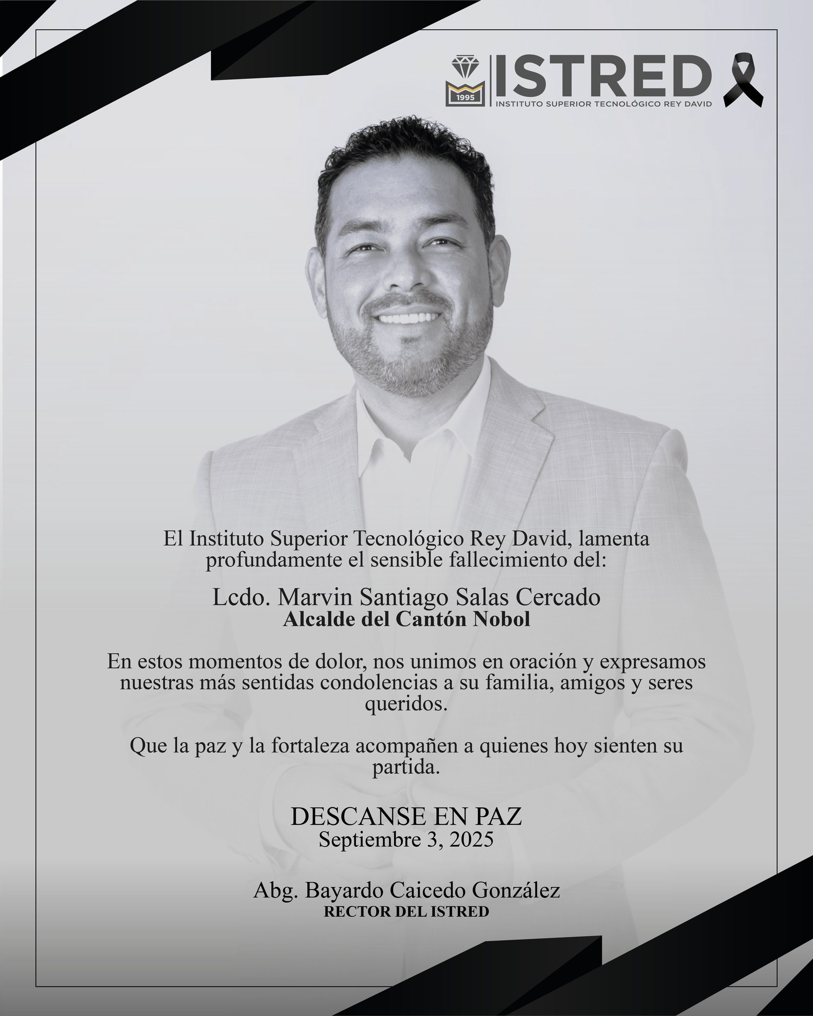 🕊️ Comunicado Institucional 🕊️ El Instituto Superior Tecnológico Rey David (ISTRED) lamenta profundamente el sensible fallecimiento del Lcdo. Marvin...