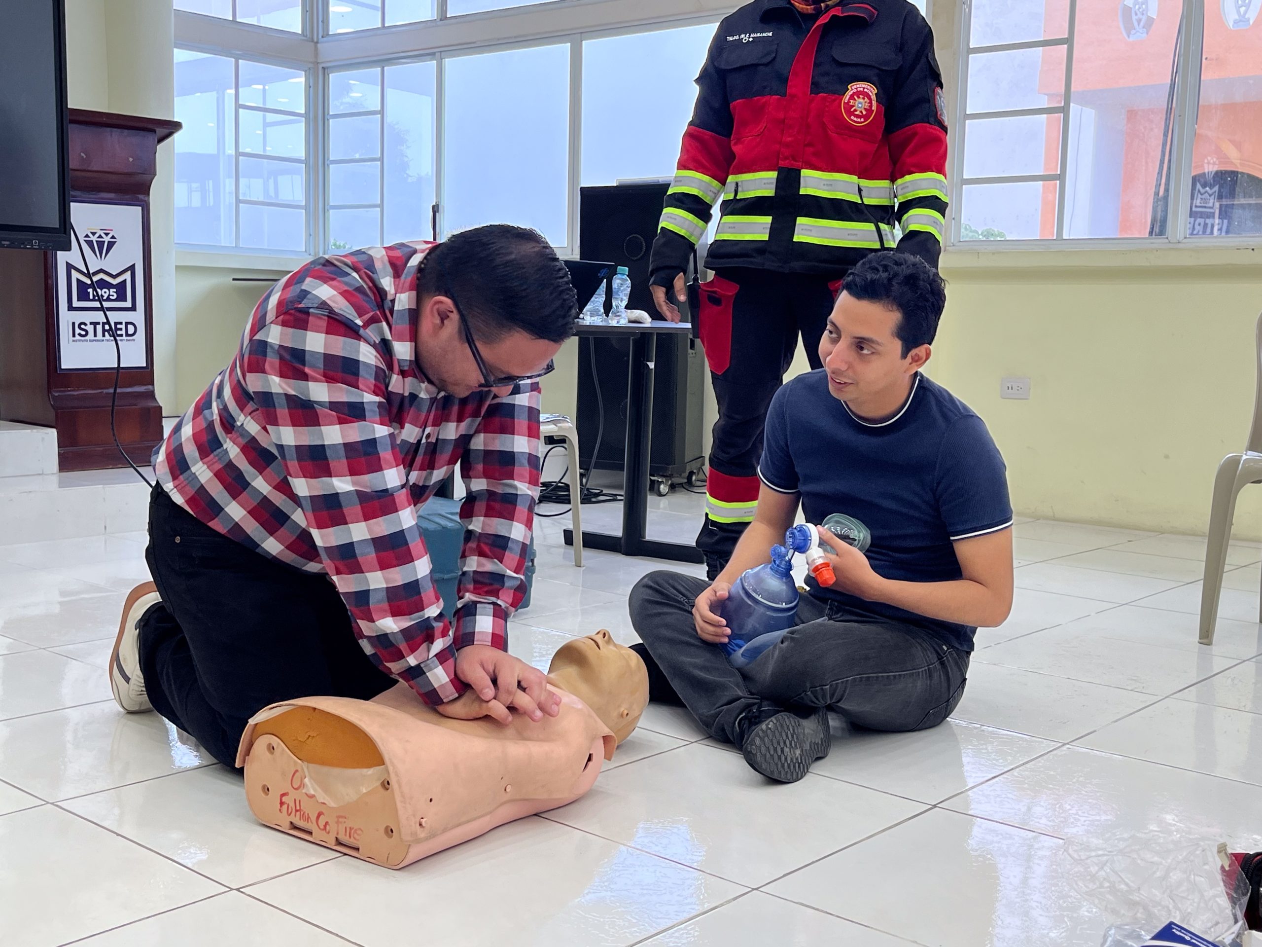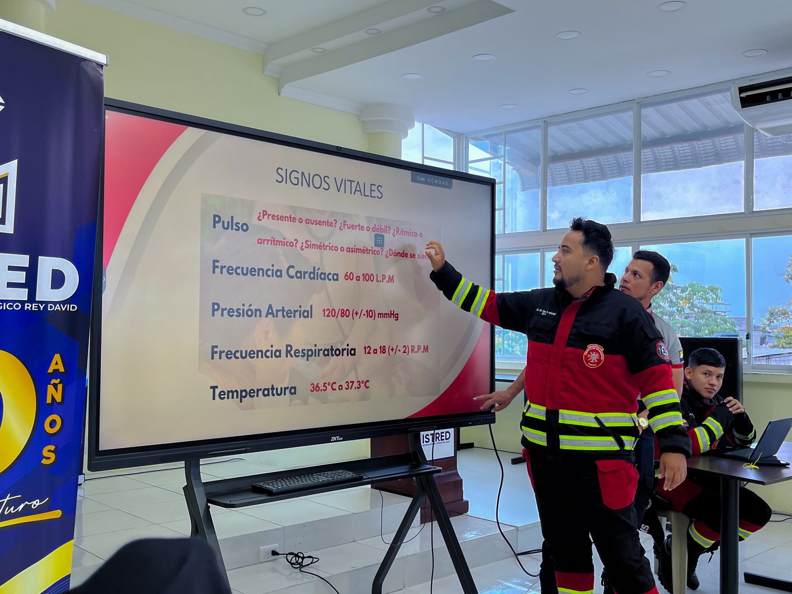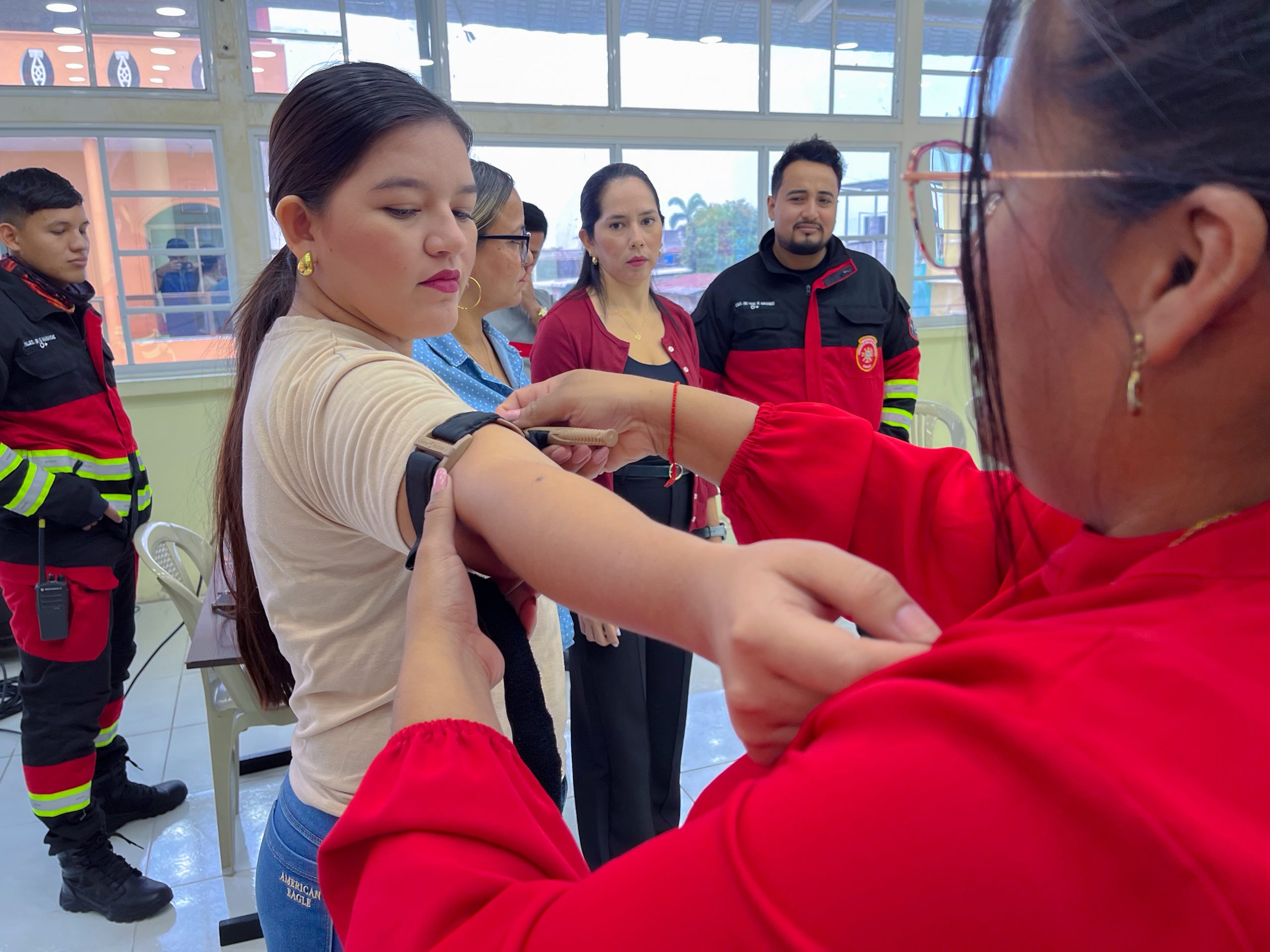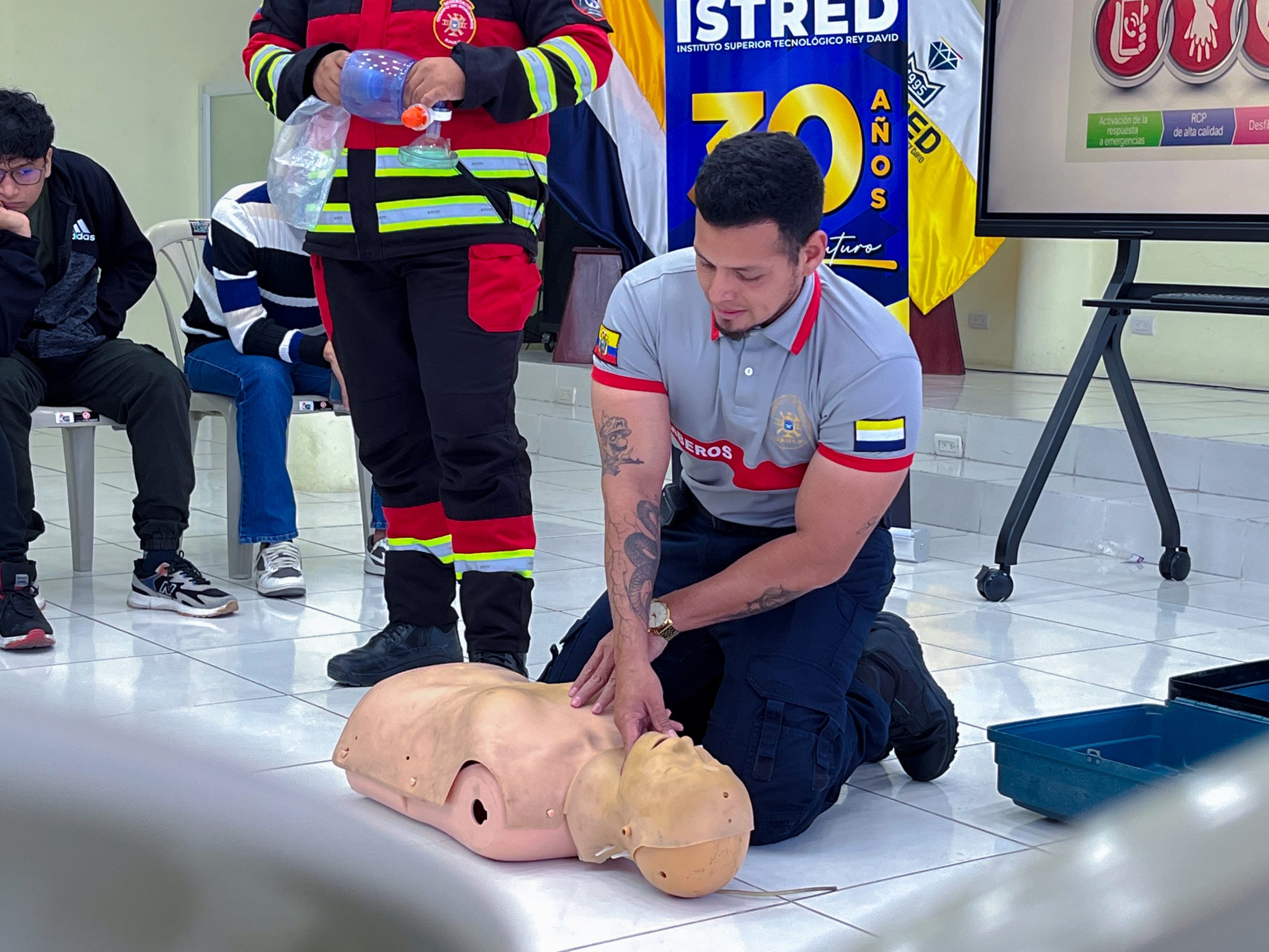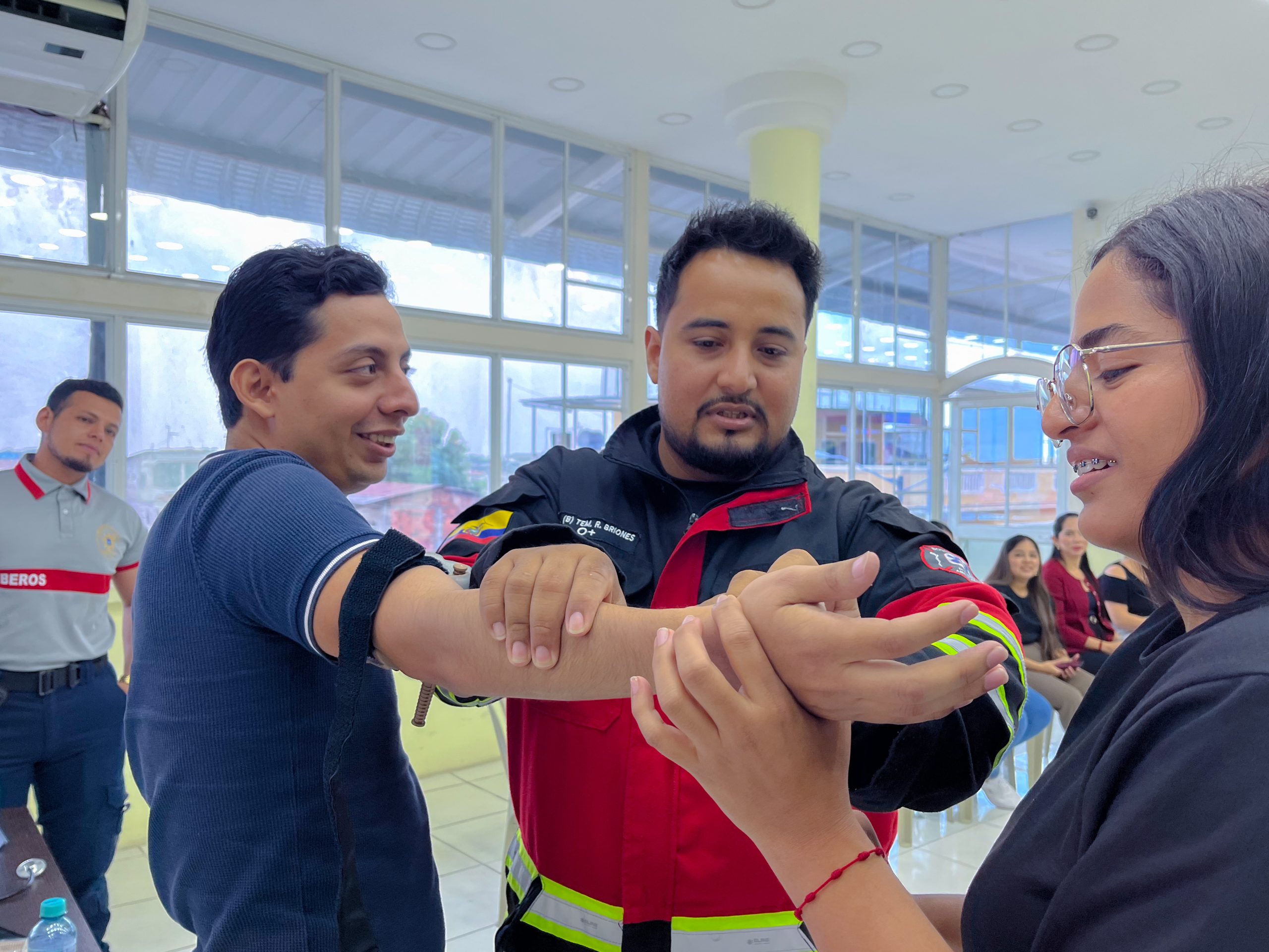 La capacitaci贸n cont贸 con la colaboraci贸n del Benem茅rito Cuerpo de Bomberos del cant贸n Daule, quienes aportaron su experiencia y conocimientos en temas de seguridad.