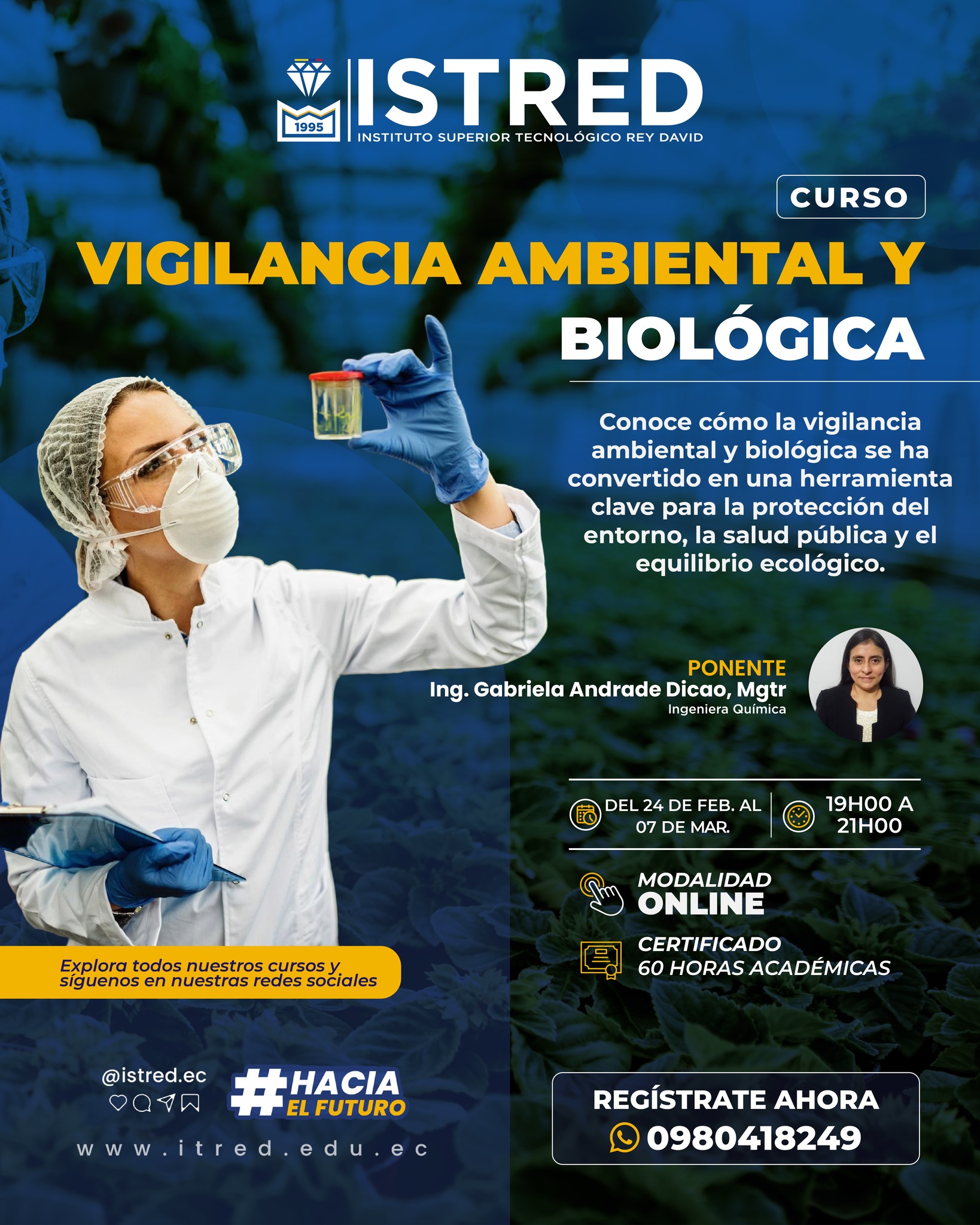 📣 Curso de Vigilancia Ambiental y Biológica 🌱🔬 Aprende la importancia de la vigilancia ambiental y biológica para la protección del entorno, la salud pública y la sostenibilidad del territorio. Este curso te brindará herramientas prácticas para identificar, analizar y prevenir riesgos ambientales. 📅 Fechas: Del 24 de febrero al 7 de marzo ⏱ Duración: […]