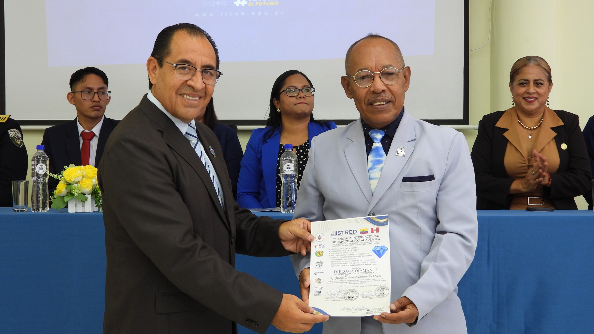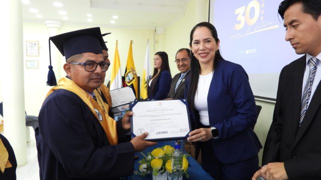 Durante el evento se entregaron reconocimientos a los mejores estudiantes de cada promoción, en mérito a su destacado desempeño académico. Asimismo, se reconoció a quienes participaron en la V Jornada Internacional de Capacitación Académica, resaltando de manera especial la participación y liderazgo de nuestra máxima autoridad institucional en esta importante jornada formativa.