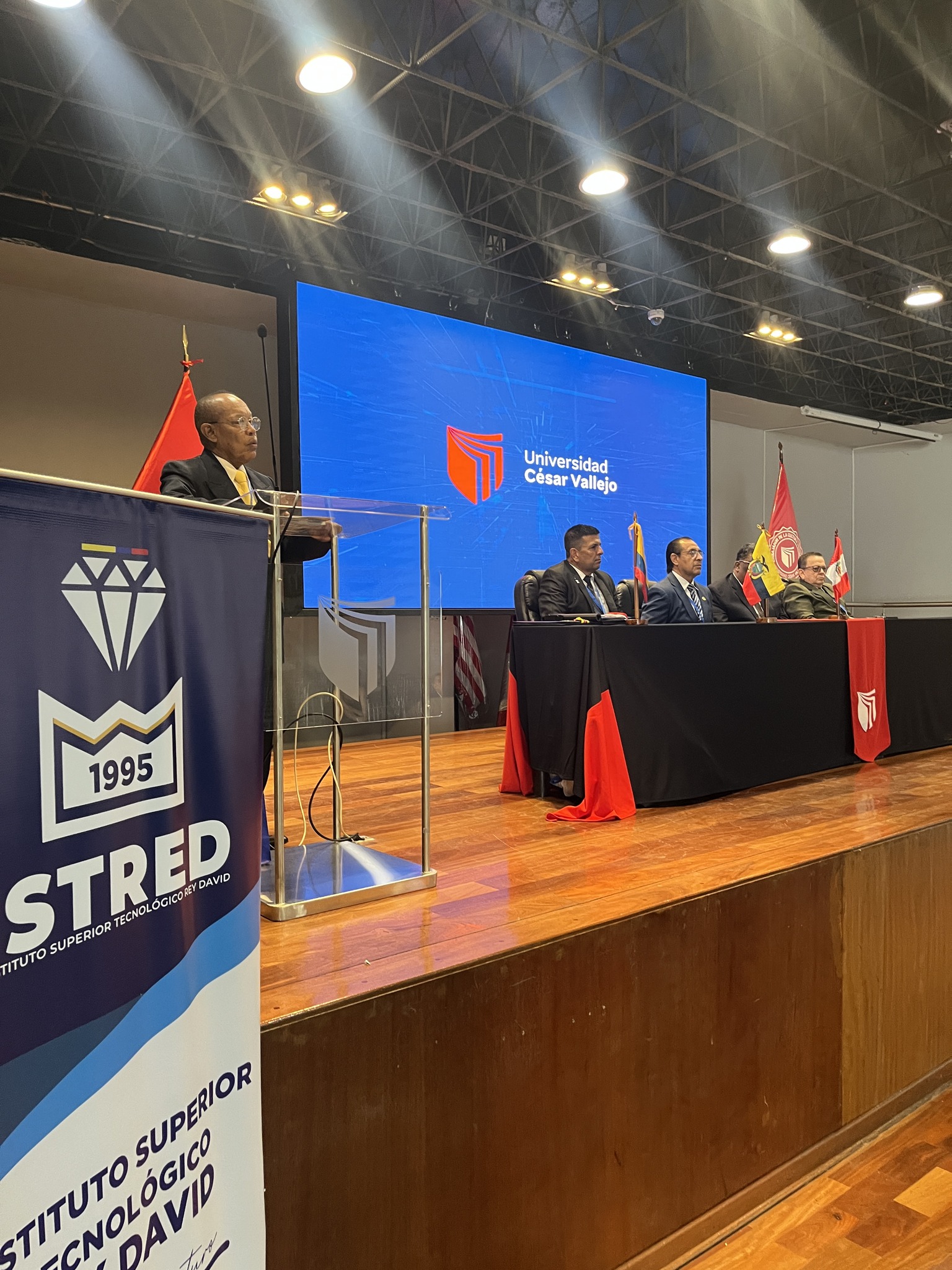 En el marco de la 5ta Jornada Internacional de Capacitación Académica 🌎🚦, nuestra delegación liderada por nuestra máxima autoridad Ab. Bayardo Caicedo González, junto a docentes y estudiantes del ISTRED 🎓, fue recibida con un cálido evento de bienvenida en la Universidad César Vallejo, en la ciudad de Lima 🇵🇪.