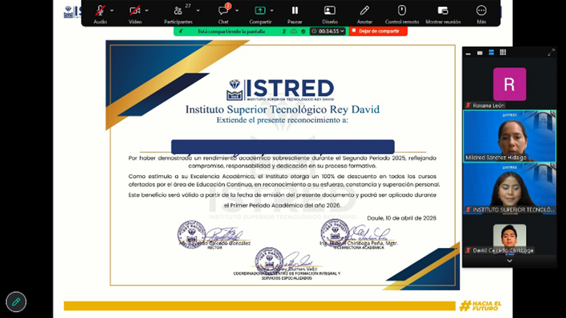 En el Instituto Superior Tecnológico Rey David vivimos un momento lleno de orgullo al reconocer a nuestros estudiantes beneficiarios de los Estímulos Positivos durante el segundo periodo académico 2025 – 2026.