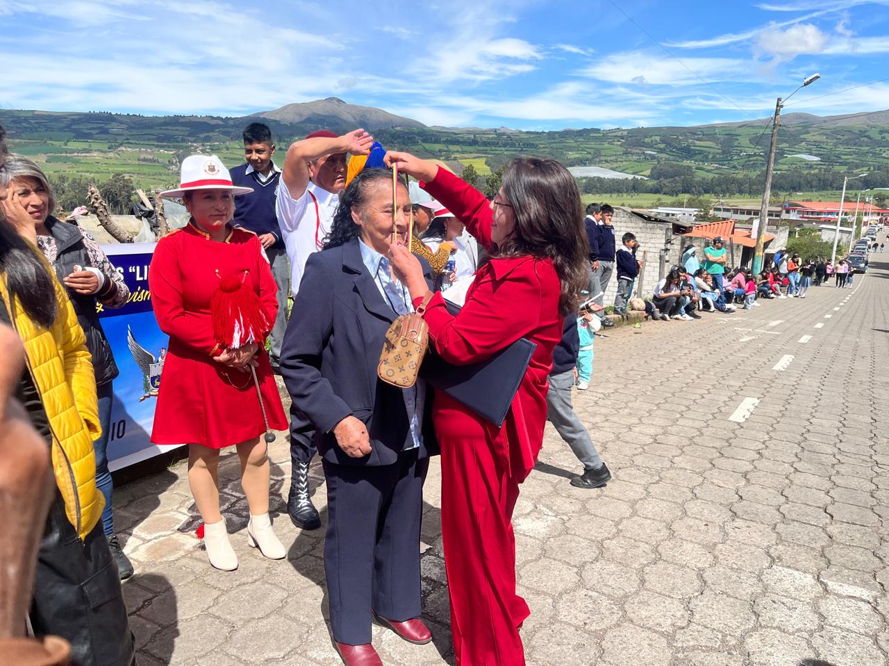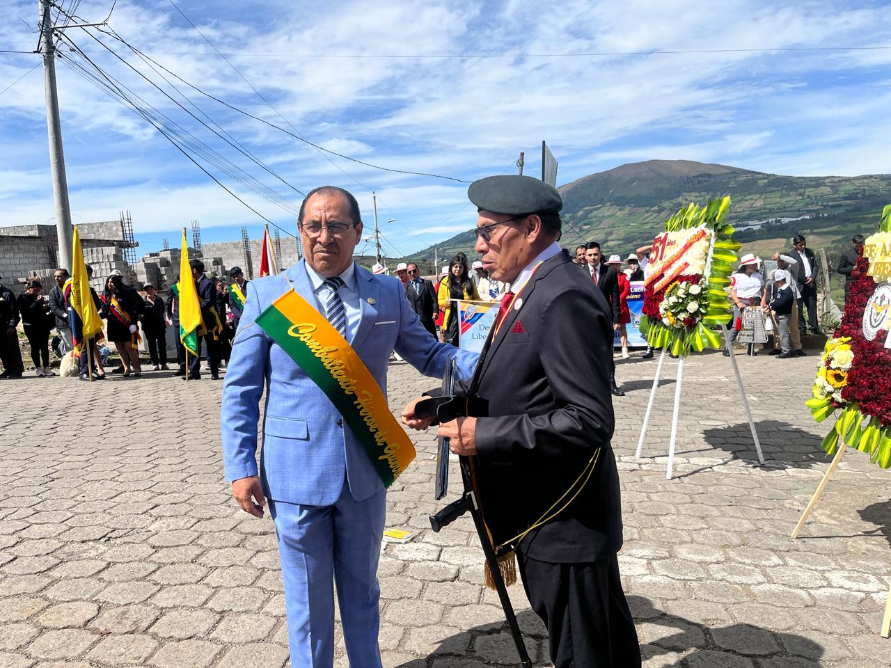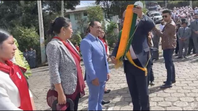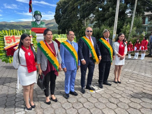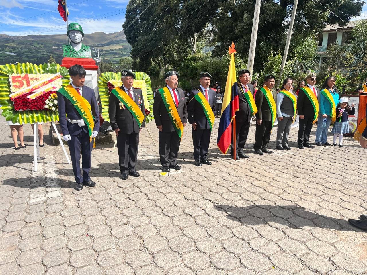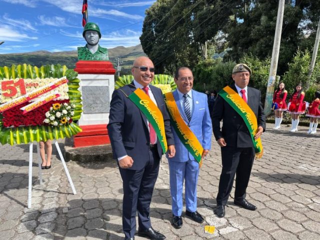El evento contó además con la presencia del Alcalde del cantón Espejo, Ing. Arnaldo Cuacés, y se desarrolló en el Monumento al Cabo Segundo Nicanor Quiroz, espacio simbólico que representa la gratitud permanente hacia quienes sirvieron a la patria con honor.