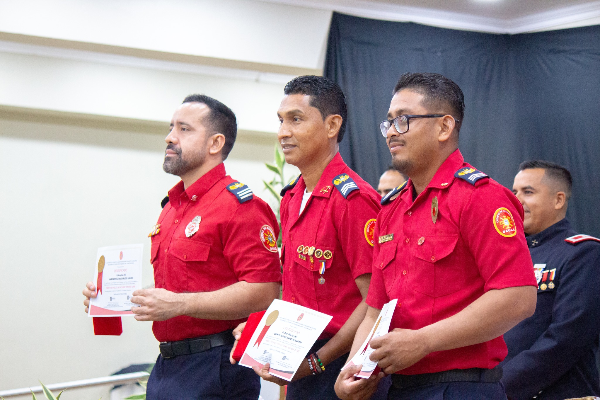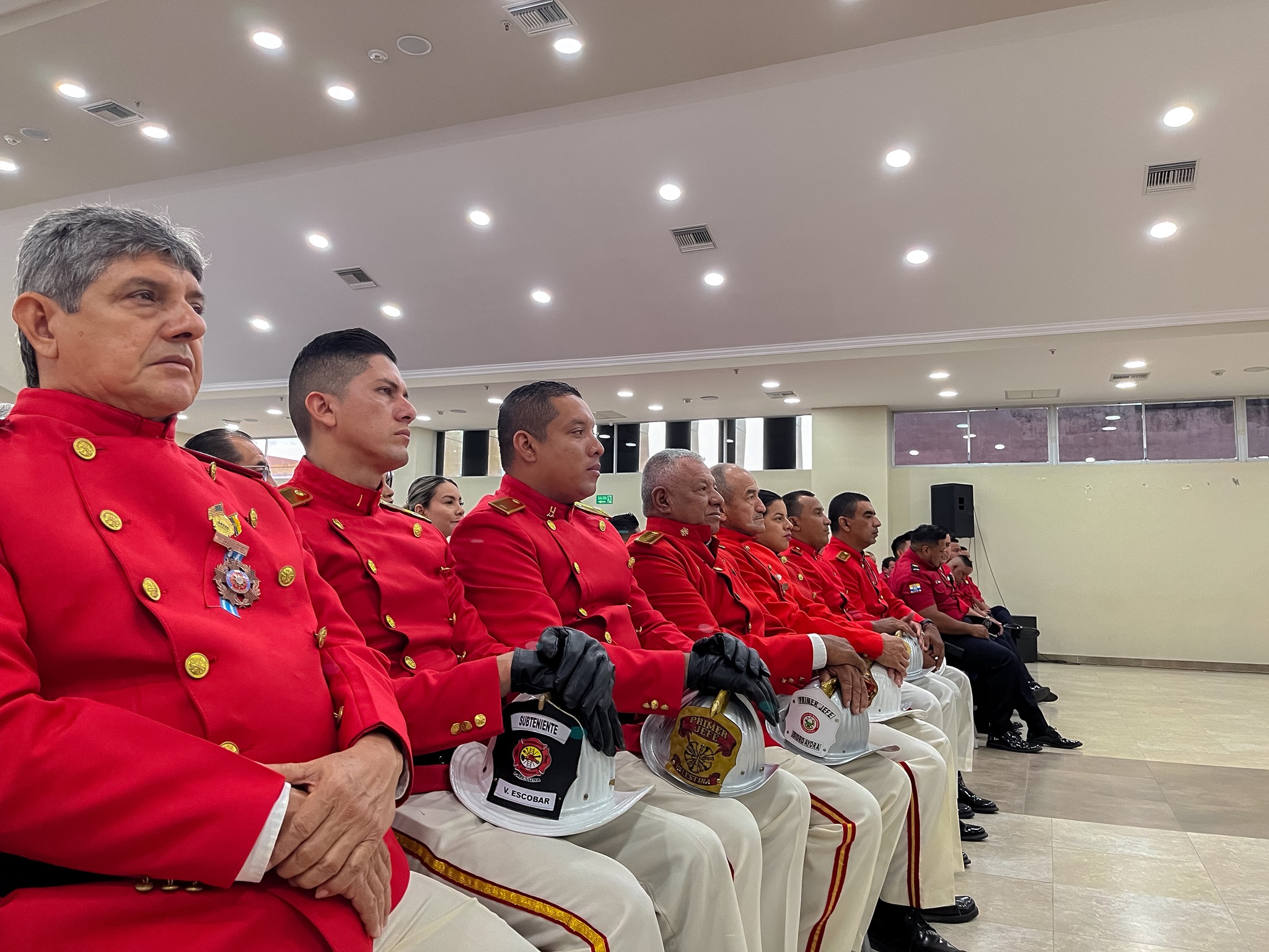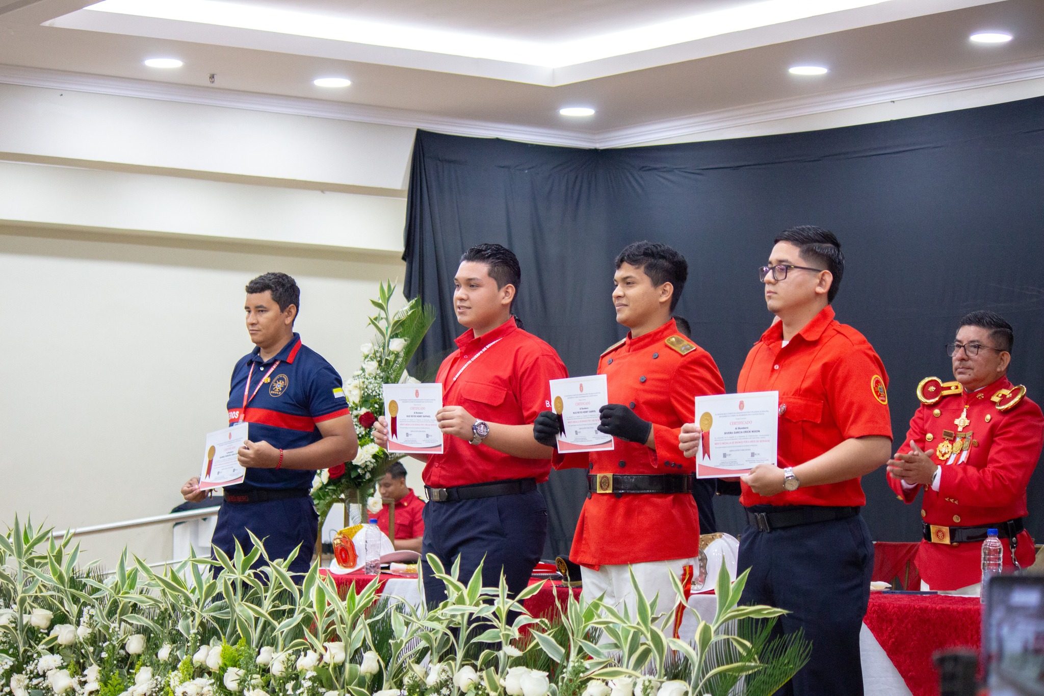 Durante la ceremonia se entregaron reconocimientos al personal destacado y a quienes participaron en la atención de la emergencia por la caída del puente Gonzalo Icaza Cornejo, un homenaje a su compromiso y entrega por la seguridad de todos. 🚒❤️